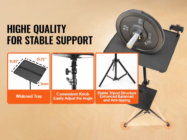 Sturdy Load Capacity: This laptop stand tripod is designed to hold up to 11 lbs and features shock-absorbing elements to keep your equipment safe and secure.