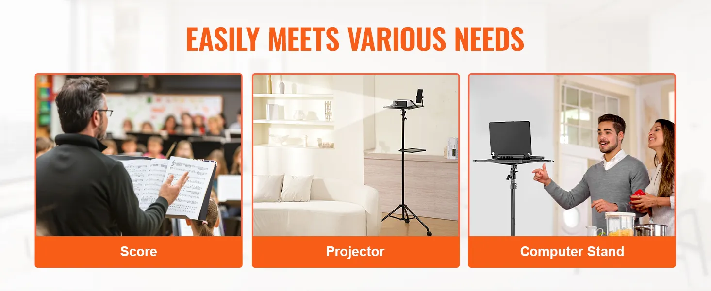 Strong Compatibility: This tripod projector stand supports laptops, recorders, projectors, and more, making it perfect for musicians, teachers, and students—just plug and play!