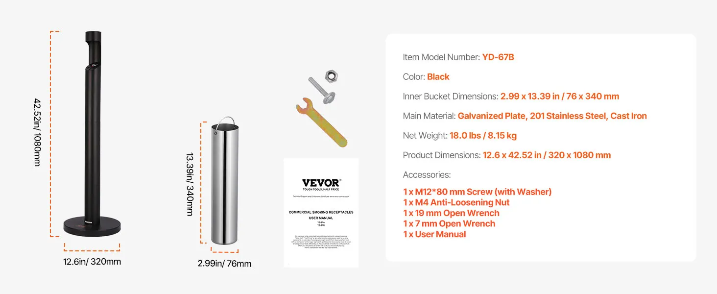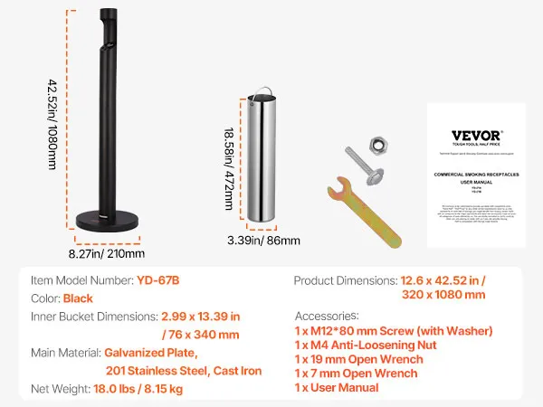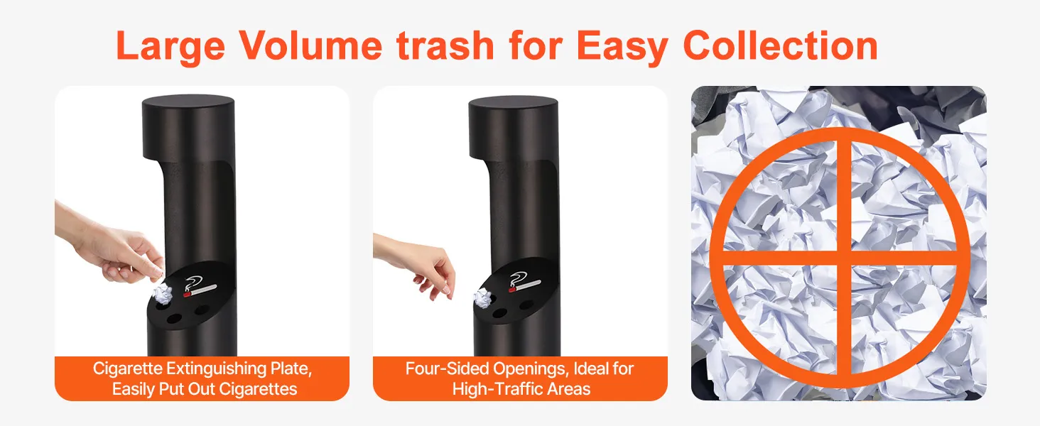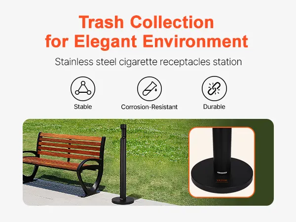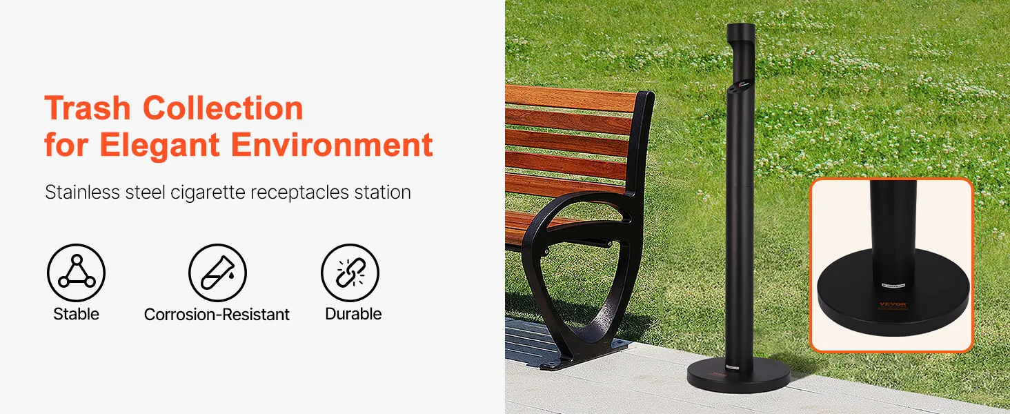 Cast Iron Weighted Base: Equipped with a high-quality cast iron base, this cigarette butt can ensures solid support, preventing tipping and enhancing security. Even in outdoor environments, it stands firmly, providing reliable stability and security.