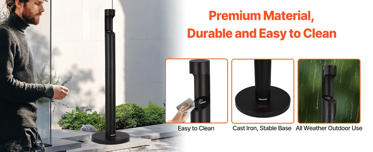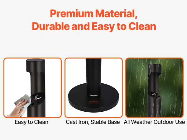 Premium Durability: The outdoor cigarette butt disposal unit is crafted from heavy-duty iron with a powder-coated finish. It’s highly resistant to corrosion and weathering while maintaining a modern, refined look. Built for long-term outdoor use, it remains stable and secure in all conditions.