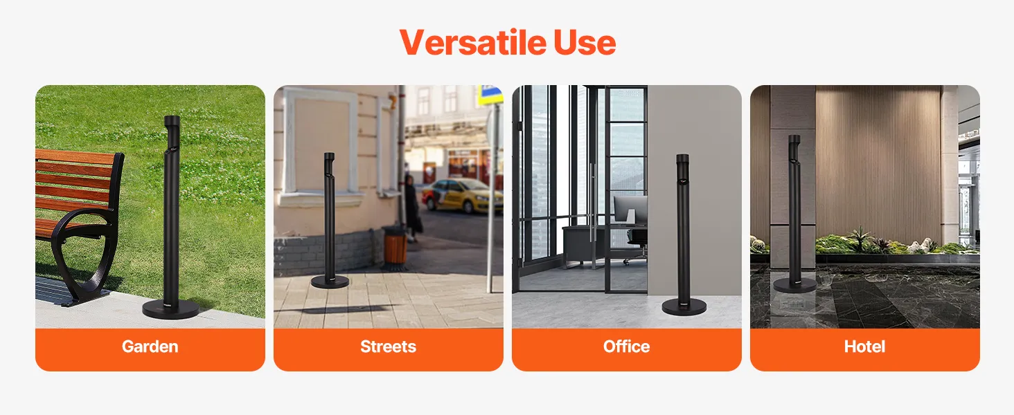 Stylish & Modern Look: Featuring a minimalist and modern design, this cigarette ashtray for outside blends easily into various environments such as offices, hotels, shopping malls, and public spaces, effortlessly enhancing the aesthetic appeal of any area.