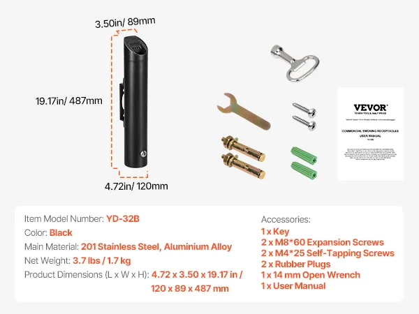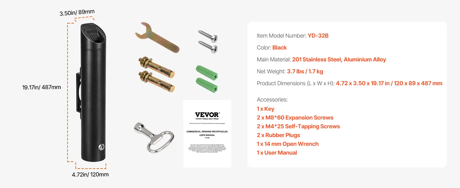 • Premium Durability: Made from high-quality stainless steel, this cigarette butt receptacle boasts excellent corrosion and weather resistance. Its sleek and stylish appearance ensures long-term outdoor use with stability and security, making it a reliable choice for cigarette butt disposal.
