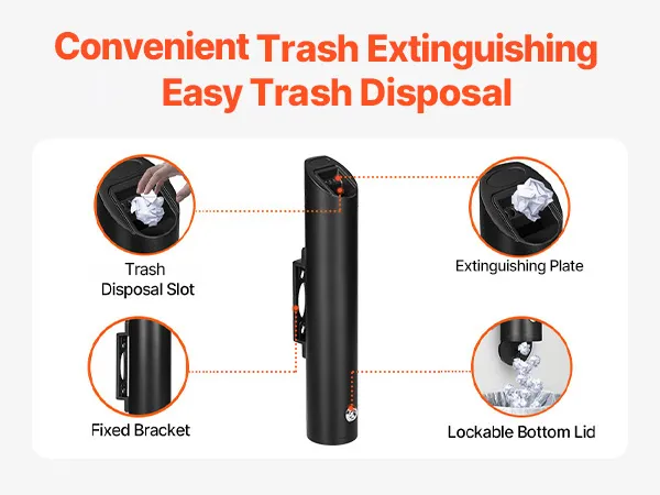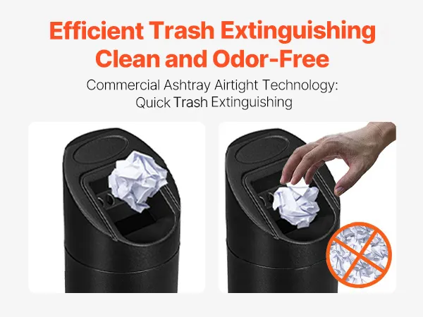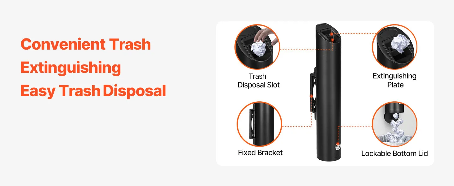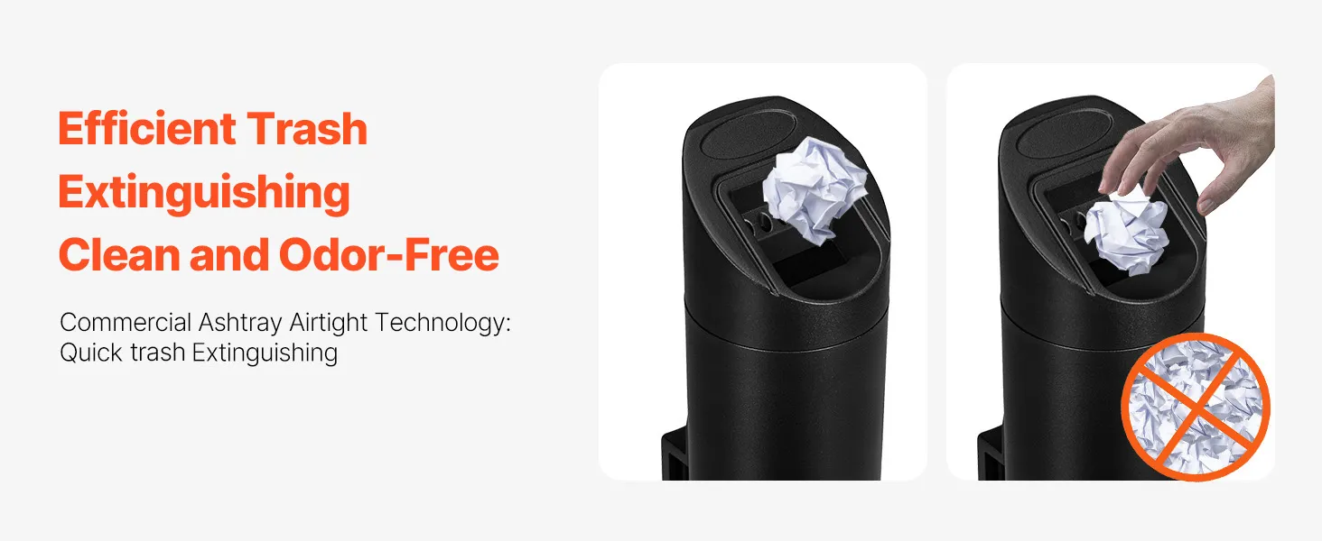 • Secure & Fast Extinguishing: The cigarette butt disposal opening uses commercial-grade ashtray airtight technology to ensure that burning cigarettes are quickly extinguished, reducing the risk of fire. It helps maintain a clean and tidy environment, making it perfect for entertainment venues and public spaces.