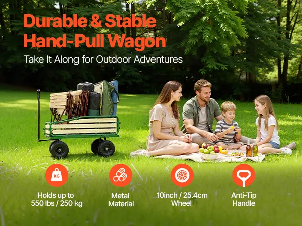 Veilig en stabiel: Deze kinderhandkar heeft een stevig, duurzaam frame dat tot 250 kg kan dragen. Hij is ideaal voor het vervoeren van aarde, meststoffen, kampeerspullen en nog veel meer. De vier rubberen wielen van 25,4 cm zijn duurzaam en slijtvast, waardoor een soepele rit over zand, gras, grind en diverse andere ondergronden gegarandeerd is.