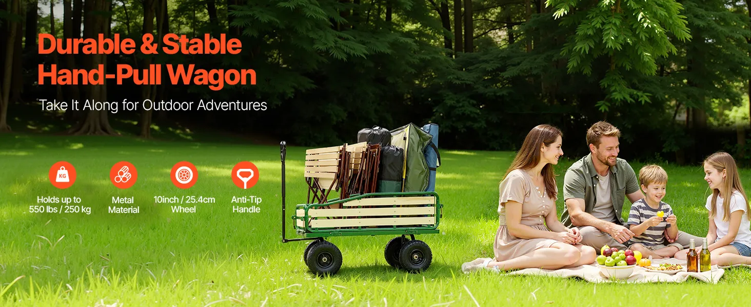 VEVOR Kinderhandkar, 118 cm, transportkar met duwstang, gemaakt van hout en metaal, max. 250 kg draagvermogen, ideaal voor kinderen vanaf 5 jaar, voor in de tuin, uitstapjes en op het strand, groen en zwart