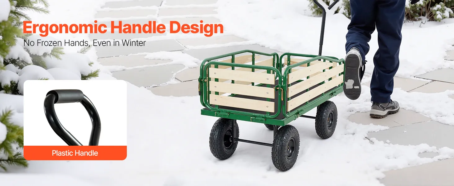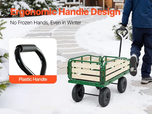 Verbeterde handgreep: De kinderhandkar is voorzien van een handgreep met een terugslagveer die voorkomt dat de handgreep terugschiet en de voeten van het kind raakt, waardoor de veiligheid wordt verhoogd. De handgreep is gemaakt van duurzaam plastic en biedt een comfortabele grip die in de winter niet bevriest, wat het gebruiksgemak en het algehele comfort verbetert.