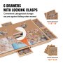 Six Storage Drawers: Made from natural pine wood, this wooden jigsaw puzzle plateau is eco-friendly and structurally stable, with a smooth tabletop for easy puzzle movement. The sliding drawers allow you to conveniently store and categorize puzzles without worrying about losing them.