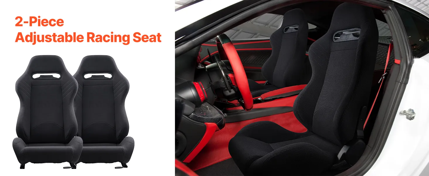 VEVOR Racing Seat Verstelbare Racing Cockpit met brede kantelhoek en zeer veerkrachtig schuim 2 stuks Racing Chair met zachte polyesterstof en Q235B-schuif, geschikt voor raceauto's en go-karts