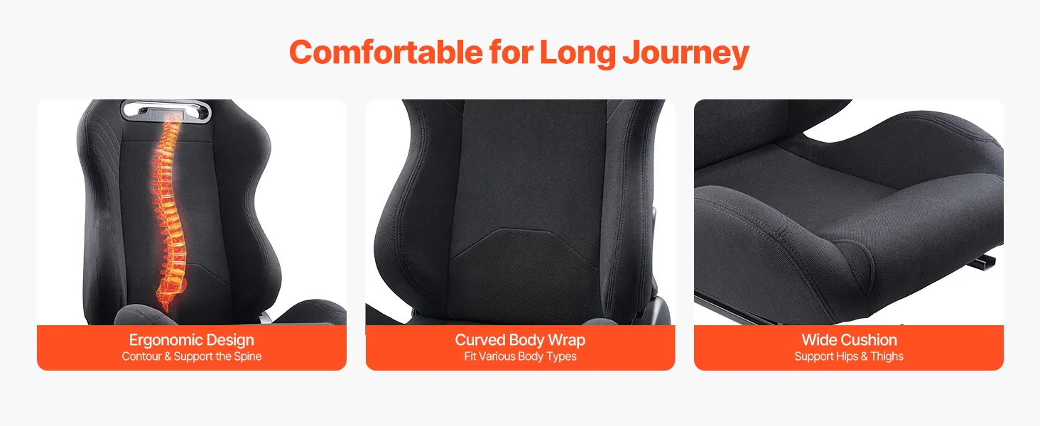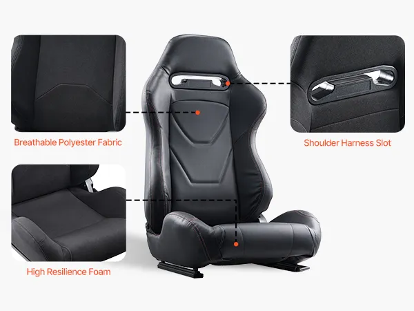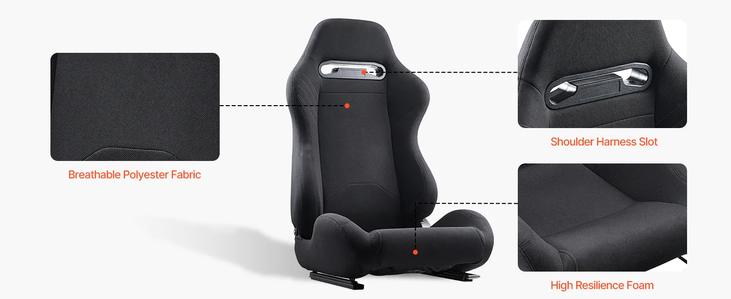 Met hun stevige frame en zeer veerkrachtig schuim bieden onze racestoelen uitstekende ondersteuning en comfort en zijn ze geschikt voor alle rijomstandigheden. Het slanke, hoogwaardige ontwerp past bij een groot aantal voertuigen en laat niets te wensen over.