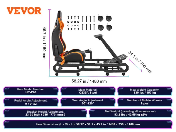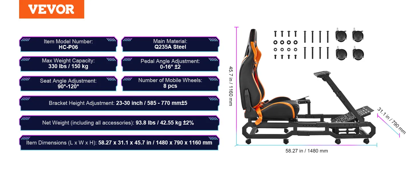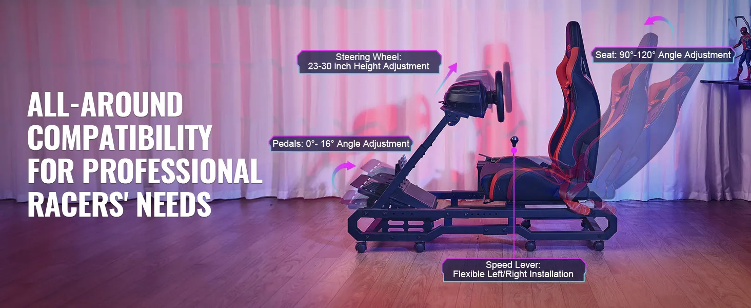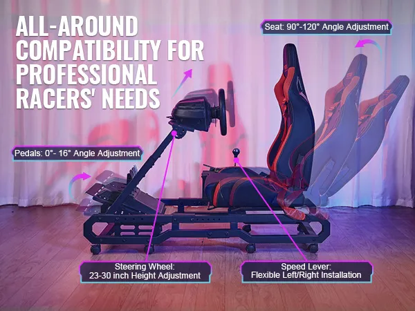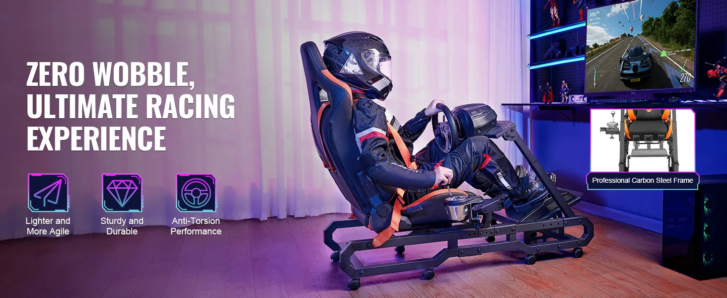 Sturdy and Non-Shift: Made from carbon structure steel, it remains firmly in place without any shifting. Close welds, thick carbon steel plates, and a heavy-duty frame provide exceptional stability, ensuring a more realistic driving experience during gaming.
