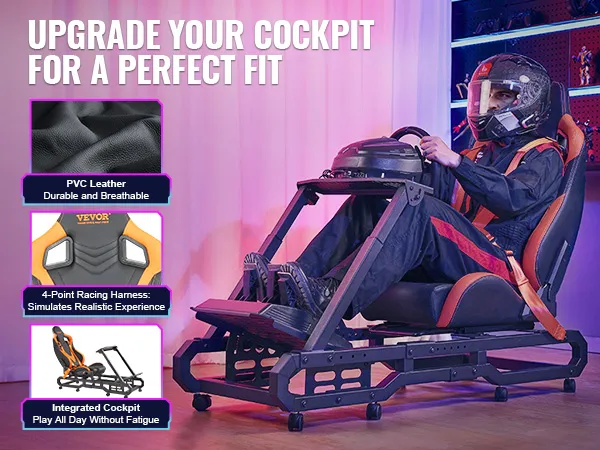 Professional-grade Cockpit: Features a professional-grade integrated cockpit design with PVC leather fabric for a highly comfortable seating experience. High-strength steel frame and soft PVC leather fabric ensure extended gaming sessions remain comfortable. The seat supports easy 90° to 120° front-to-back adjustment, allowing you to find the perfect seating position effortlessly.