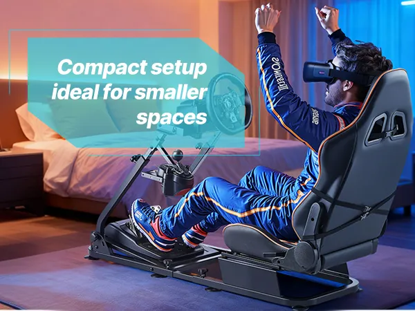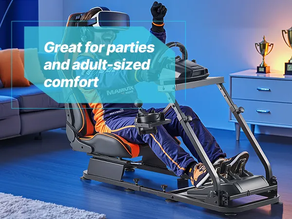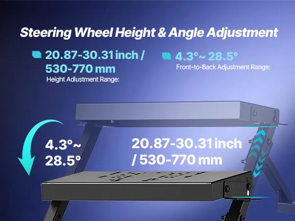 Volledig verstelbaar: De hoogte en hoek van het stuur zijn verstelbaar, de pedalen hebben drie standen en de pook kan naar links of rechts worden gedraaid. Met deze simracestandaard geniet je van een comfortabele, realistische rijervaring op elk circuit en in elke racegame.