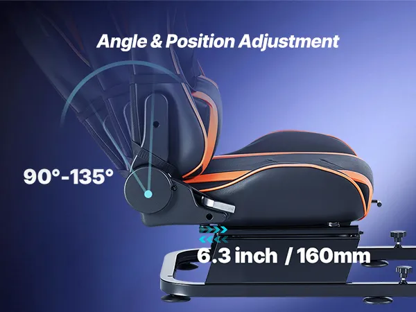 Professionele cockpit voor racesimulators: de stoel kantelt 90°-135° en is 160 mm naar voren/achteren verstelbaar, waardoor hij geschikt is voor coureurs van alle lengtes en lichaamsbouw. Geniet van een comfortabele houding op maat op deze simracestandaard voor korte sprints of lange duurraces.