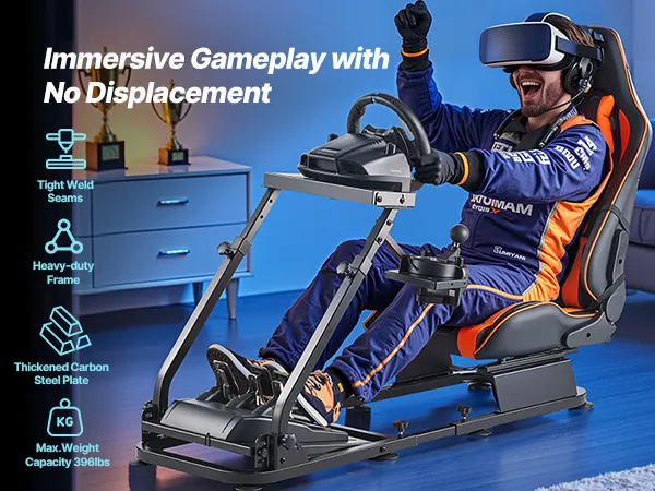 Heb je last van instabiele wielen, een oncomfortabele houding of rugpijn na lange racesessies? Deze robuuste cockpitstandaard voor racesimulators biedt een meeslepende ervaring. Het verstevigde frame zorgt voor stabiliteit en gewichtsondersteuning, terwijl de ademende zitting vermoeidheid tijdens lange gamesessies vermindert.