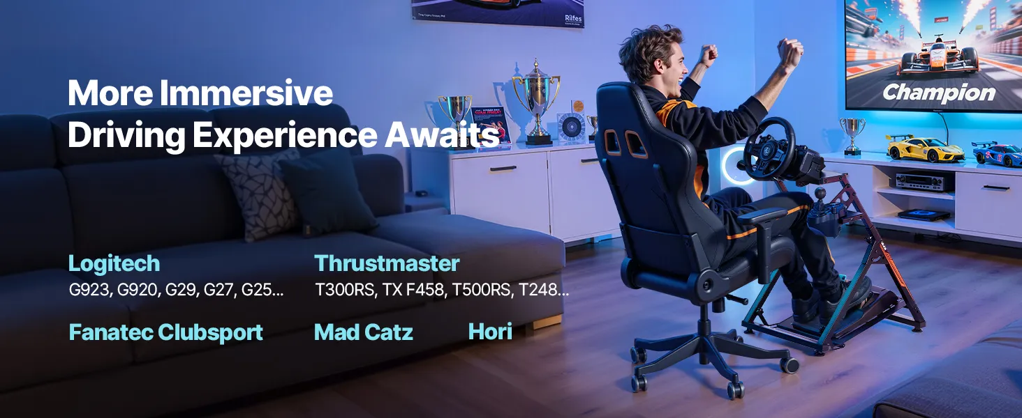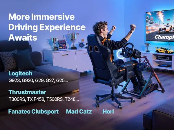 Compatible with Major Brands: This racing wheel stand has pre-drilled holes to fit Logitech, Thrustmaster, Fanatec, Hori, Mad Catz wheels, pedals, and shifters. Upgrade accessories anytime without worrying about compatibility