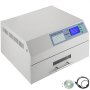De reflow-machine neemt snelle infraroodstraling en een soepele windcirculatie aan, zodat de temperatuur zeer nauwkeurig en gelijkmatig is. Parameters van acht (8) soldeercycli zijn vooraf gedefinieerd. De nauwkeurigheid van de thermische cyclus wordt gehandhaafd door microcomputerbesturing met gesloten lus met infraroodverwarmers, thermokoppel en circulerende lucht.