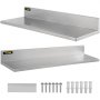 VEVOR Roestvrijstalen Plank Wandmontage 400x220x85 mm Zwevende Wandplank 2 Stuks Keuken Wandplank Roestvrij Staal met 20 kg Laadvermogen Perfect voor het Opbergen in de Badkamer Slaapkamer Keuken enz