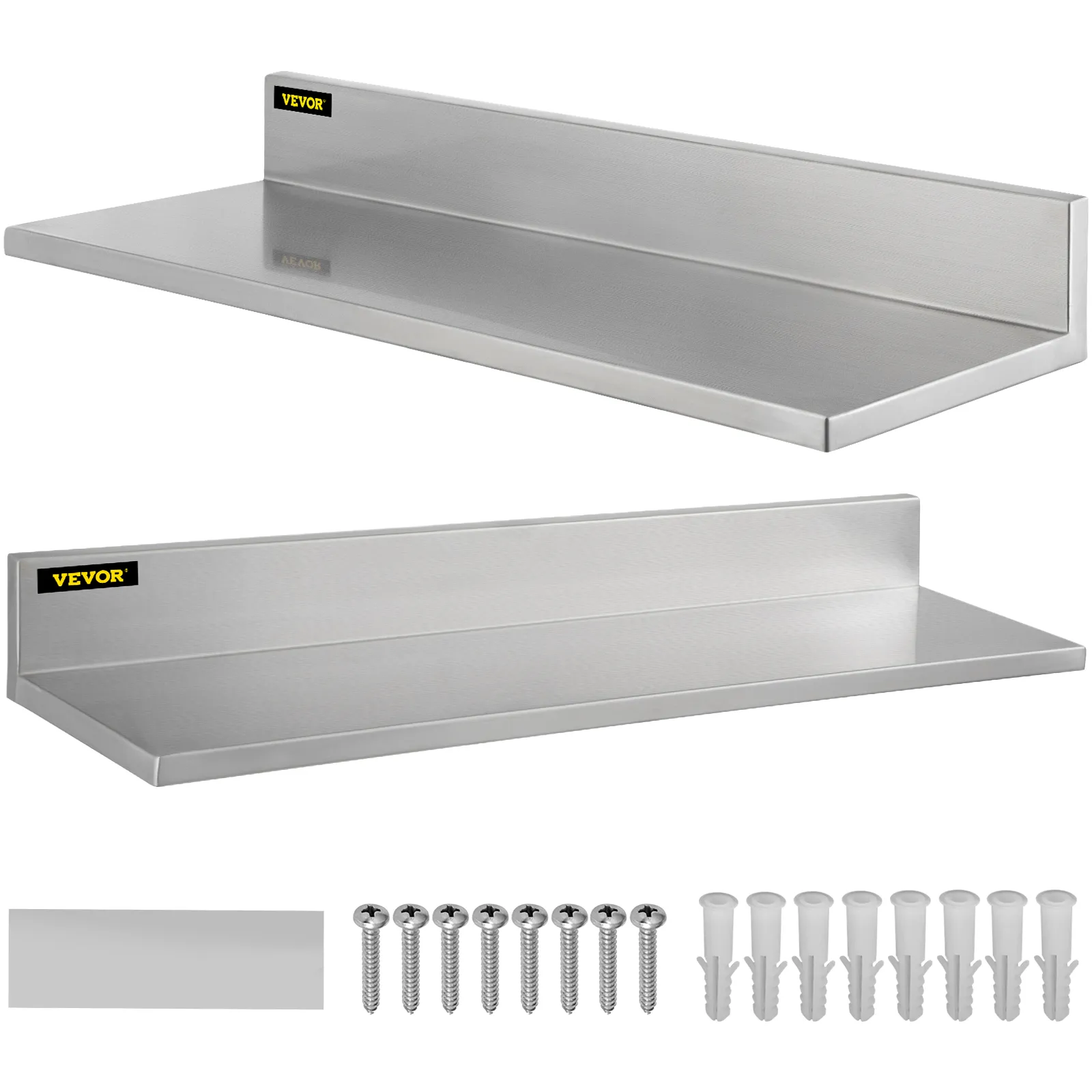 VEVOR Roestvrijstalen Plank Wandmontage 600x220x85 mm Zwevende Wandplank 2 Stuks Keuken Wandplank Roestvrij Staal met 20 kg Laadvermogen Perfect voor het Opbergen in de Badkamer Slaapkamer Keuken enz