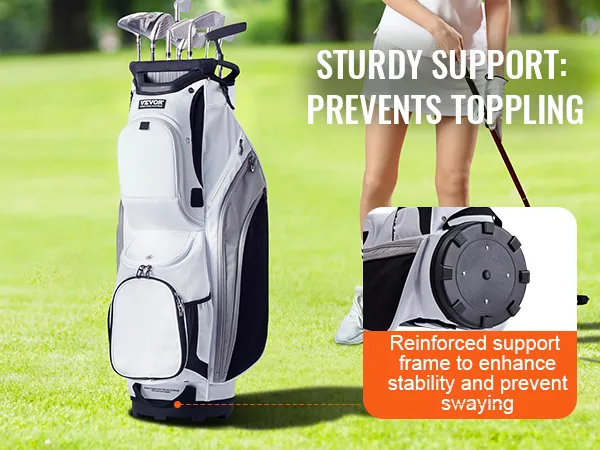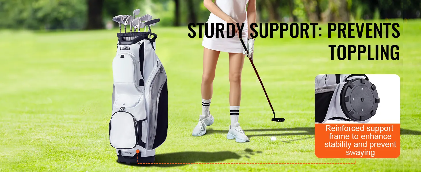Stable Support: Our golf stand bag features a sturdy base that provides excellent stability on slopes, grass, and in orchards. It prevents the bag from shaking or tipping over, ensuring it stays firmly by your side throughout your golf journey.