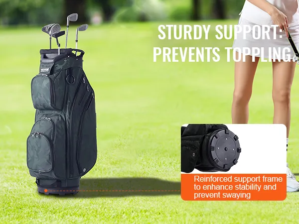 Stable Support: Our golf stand bag features a sturdy base that provides excellent stability on slopes, grass, and in orchards. It prevents the bag from shaking or tipping over, ensuring it stays firmly by your side throughout your golf journey.