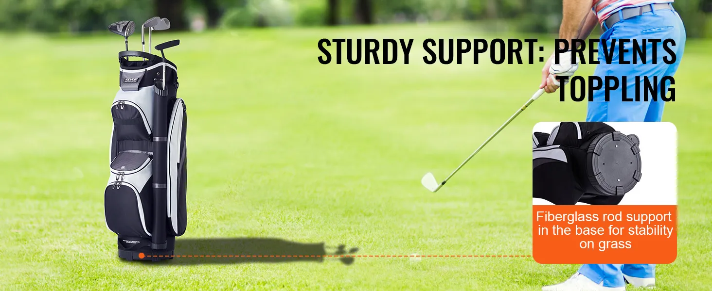 Stable Support: Our golf stand bag features a sturdy base that provides excellent stability on slopes, grass, and in orchards. It prevents the bag from shaking or tipping over, ensuring it stays firmly by your side throughout your golf journey.