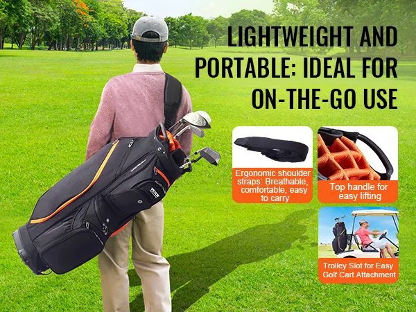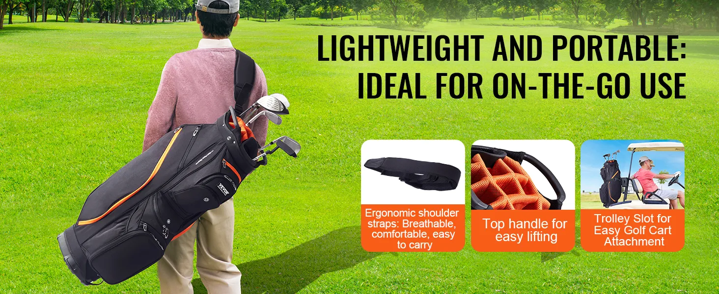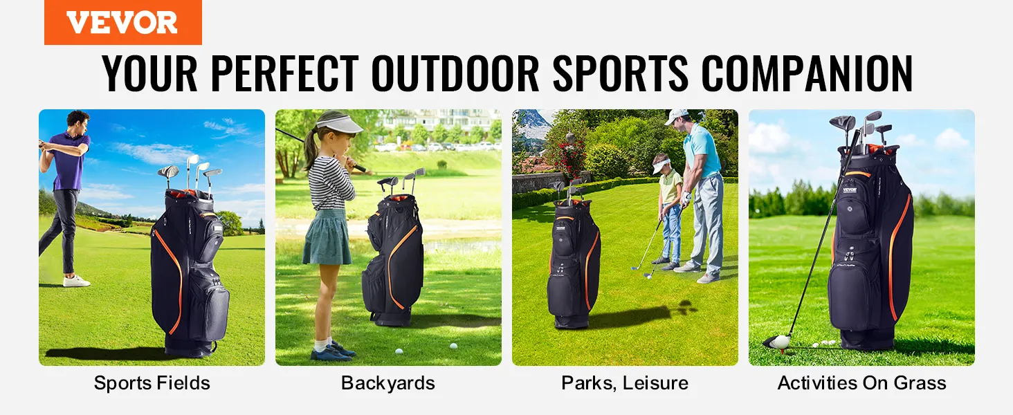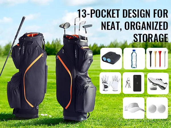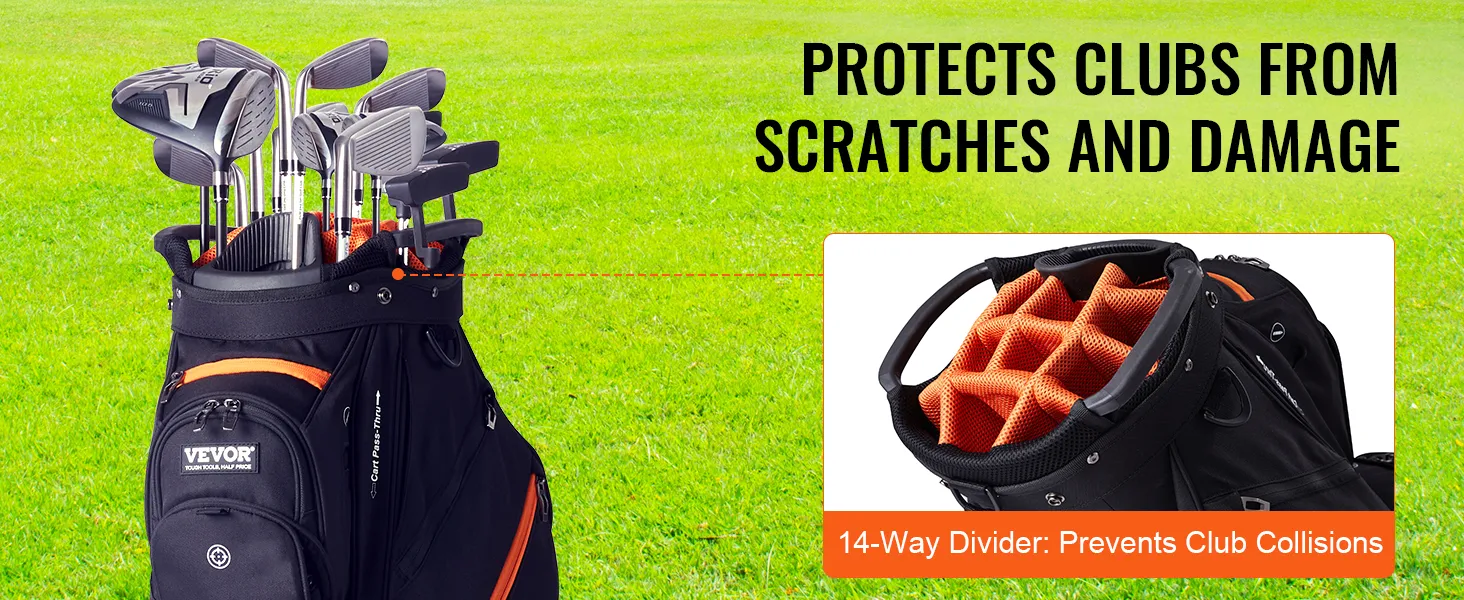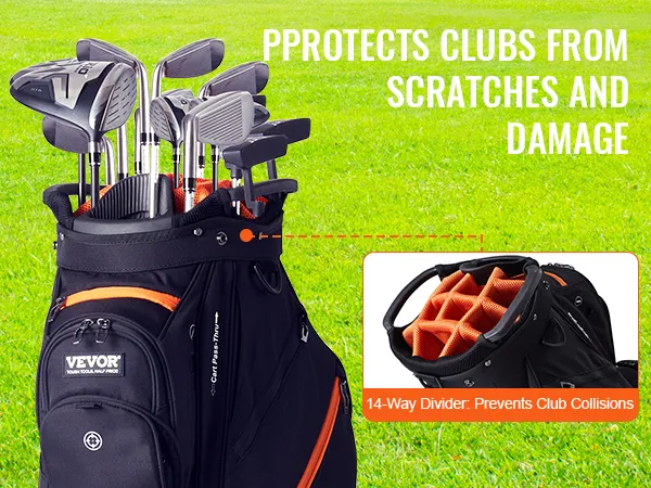 Perfect Protection for Your Clubs: Want to give your clubs better protection and avoid the clanging noise from collisions? Our golf bag features a 14-way divider system, suitable for 35-45'' clubs, keeping them securely placed in individual compartments. With thickened sponge protection, it prevents clubs from colliding and causing scratches or damage.