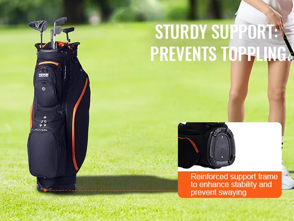 Stable Support: Our golf stand bag features a sturdy base that provides excellent stability on slopes, grass, and in orchards. It prevents the bag from shaking or tipping over, ensuring it stays firmly by your side throughout your golf journey.