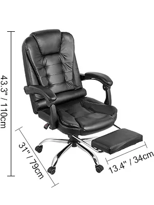 Vevor 286 Lbs Liggende Directiestoel Bureaustoel Met Hoge Rugleuning Pu-leer