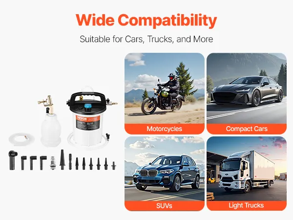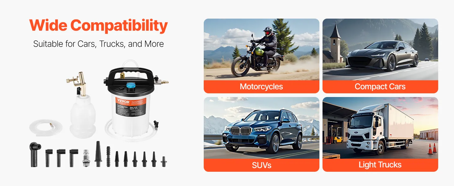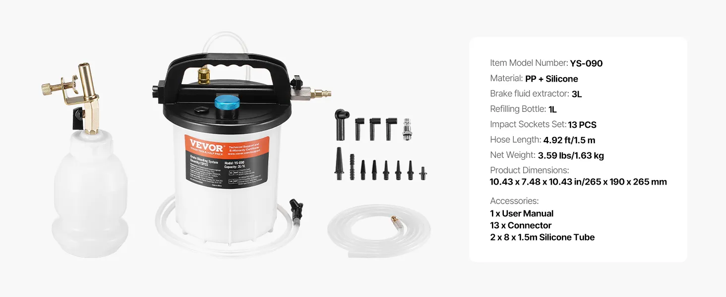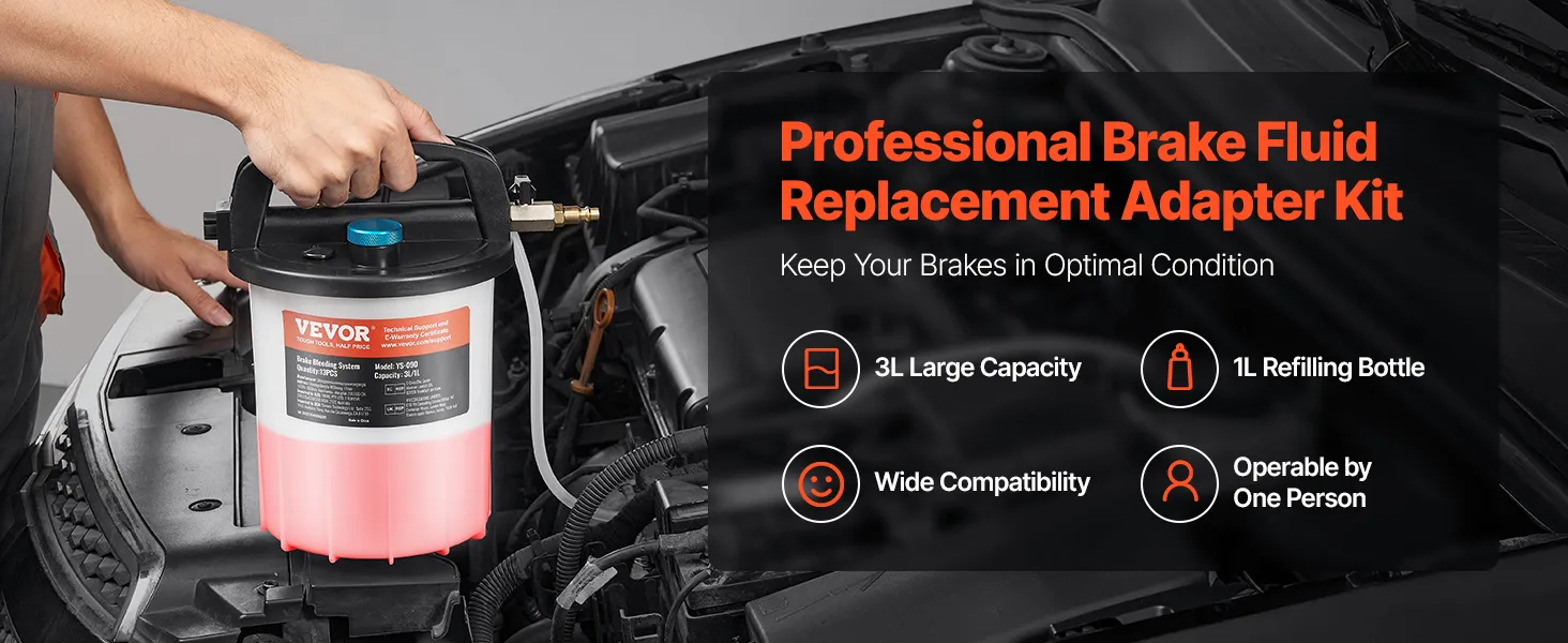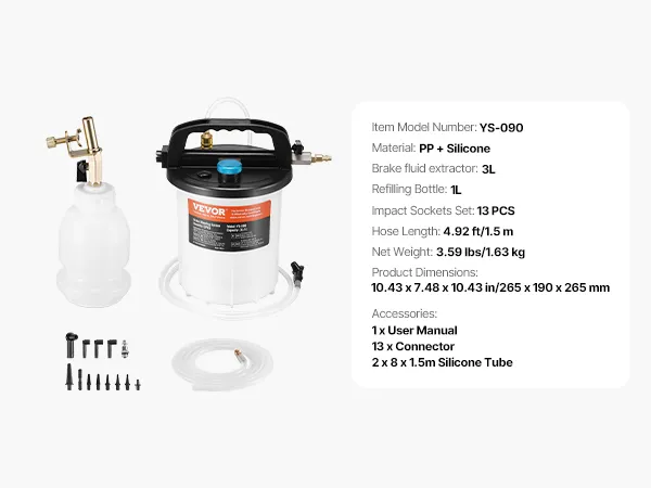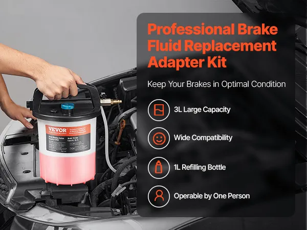 VEVOR Brake Bleeder Kit, 3L Brake Fluid Extractor with 1L Siphon Refilling Bottle & 13 Hose Connectors, Complete Brake Fluid Bleeder Kit with Extended Silicone Hose & Handle, Fit for Most Vehicles VEVOR Brake Bleeder Kit, 3L Brake Fluid Extractor with 1L Siphon Refilling Bottle & 13 Hose Connectors, Complete Brake Fluid Bleeder Kit with Extended Silicone Hose & Handle, Fit for Most Vehicles