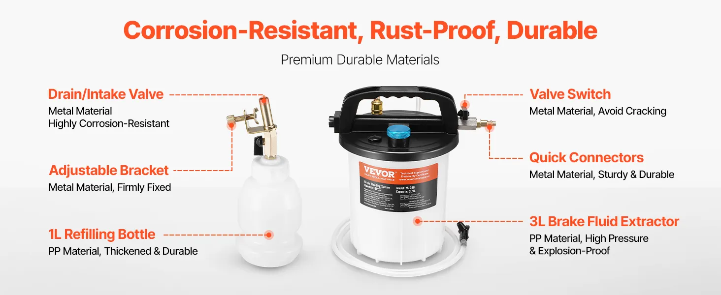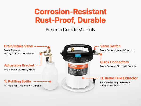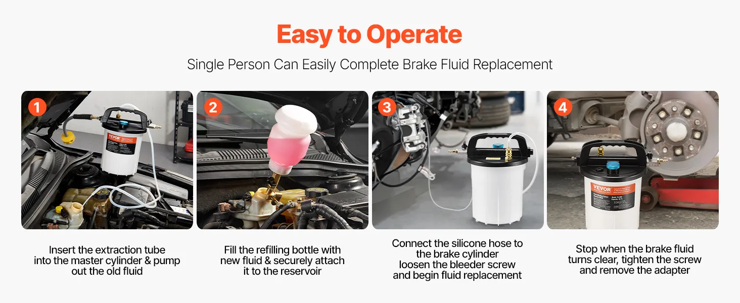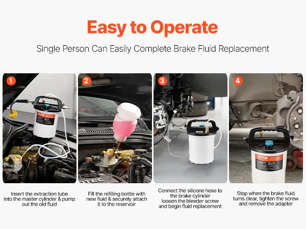 • Lightweight & Portable: Featuring a convenient carrying handle and a lightweight design at just 3.59 lbs, this kit is easy to transport and move, making it ideal for outdoor brake fluid replacement needs.