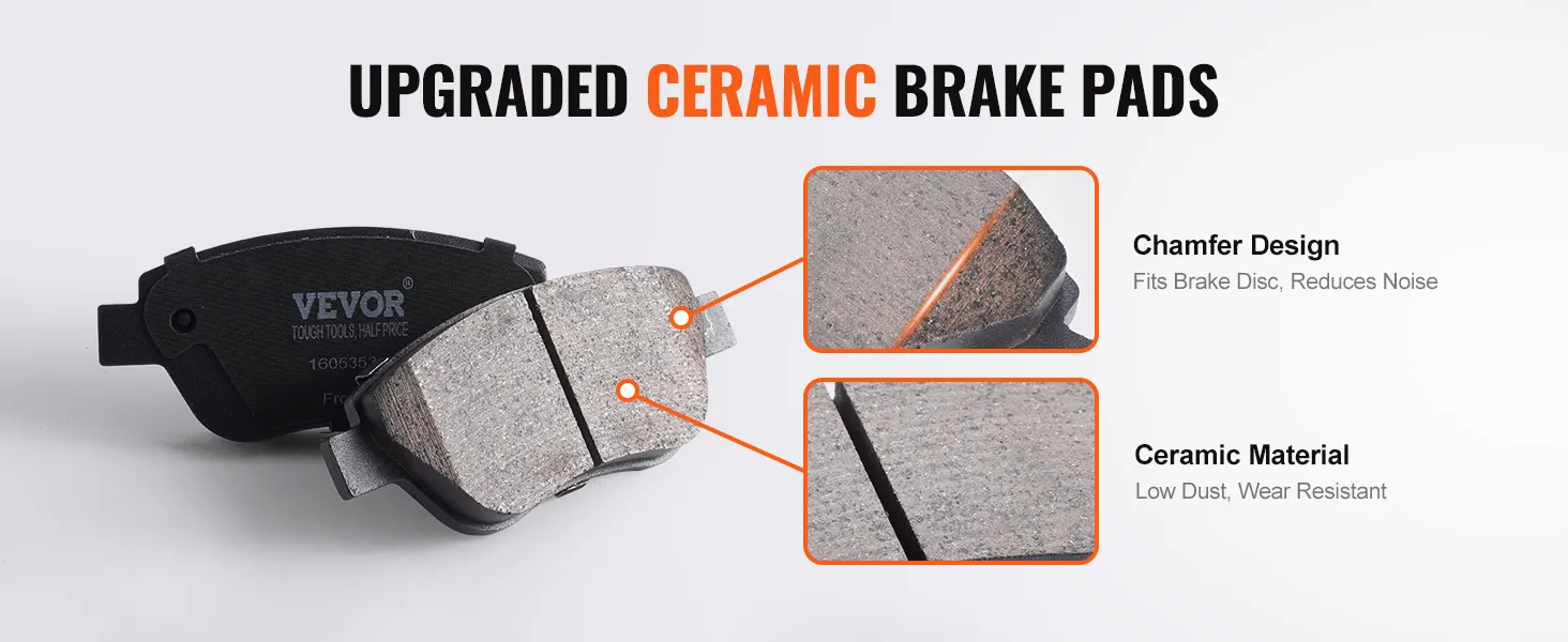Minder stof en geluid: de remblokken zijn voornamelijk gemaakt van keramisch materiaal en bieden een uitstekende slijtvastheid en kleurvastheid. Deze keramische remblokken produceren minder stof tijdens het remmen en hun taps toelopende ontwerp zorgt voor een goede pasvorm op de remschijf, waardoor het geluid wordt verminderd.
