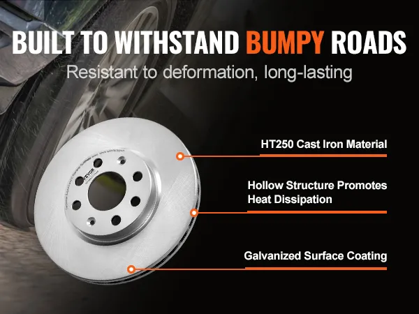 Snelle warmteafvoer: de remschijven zijn hol om de warmteafvoer te verbeteren. Ze koelen snel af bij zware belasting of bij een noodstop, waardoor de ophoping van water en stof wordt voorkomen. Ze zijn gemaakt van hoogwaardig HT250-gietijzer, zijn bestand tegen vervorming en leveren betrouwbare prestaties onder verschillende wegomstandigheden.