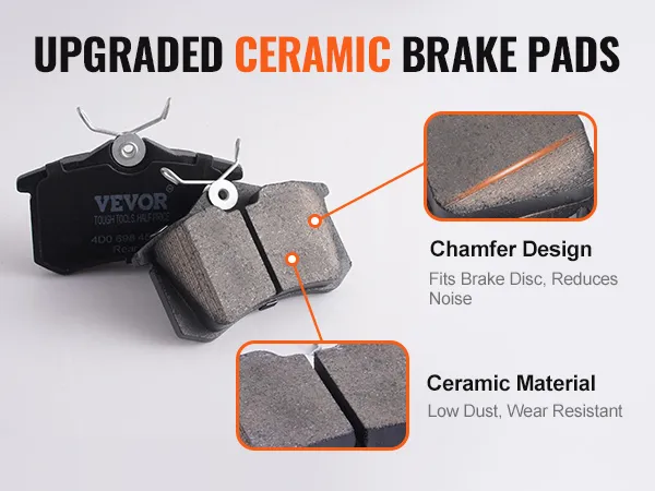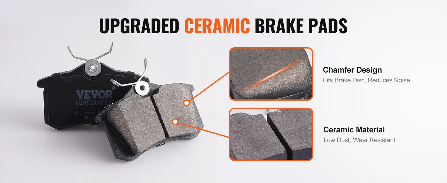 Low Dust and Noise: The brake pads are primarily made of ceramic material, offering superior wear and fade resistance. These ceramic brake pads produce less dust during braking, and their chamfered design ensures a snug fit with the brake rotor, reducing noise.