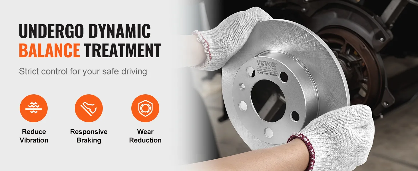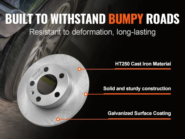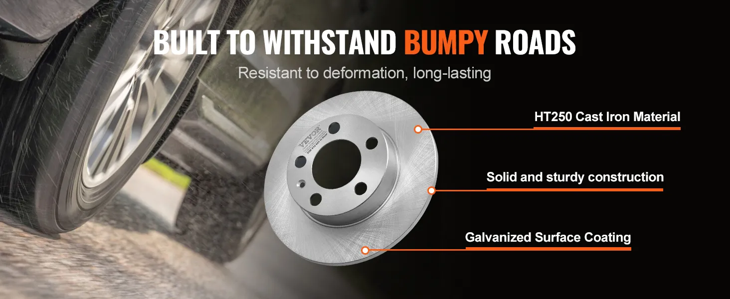 Solid Cast Iron Brake Rotors: The solid structure of the brake rotors makes them more heavy-duty and robust. Made from HT250 cast iron, they are resistant to deformation and damage, allowing you to drive confidently in various road conditions.