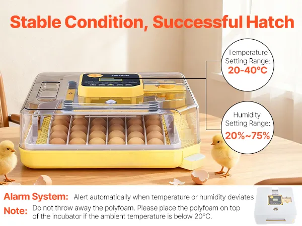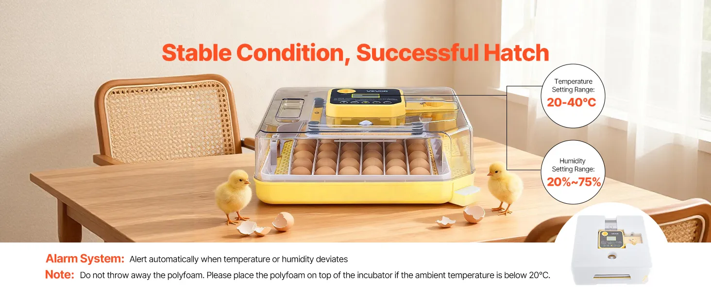 Creëer optimale omstandigheden voor het uitbroeden van sterke kuikens! Onze broedmachine helpt gebruikers het uitkomstpercentage te verhogen en de geboorte van nieuw leven aan te zien.