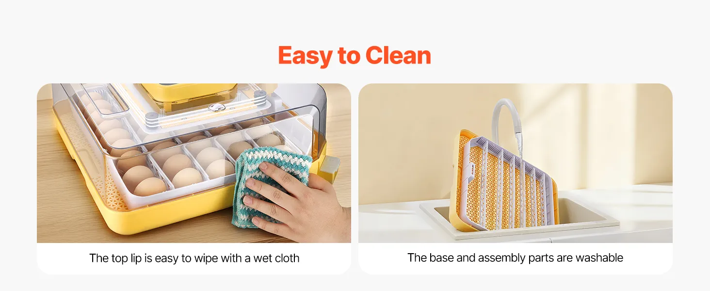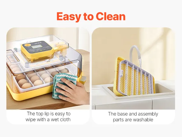 Digitaal display en nauwkeurige regeling: Onze incubator is voorzien van een nauwkeurig digitaal display voor temperatuur en luchtvochtigheid, met een temperatuurbereik van 20 tot 40 °C en een luchtvochtigheidsbereik van 20 tot 75%. 360° luchtcirculatie zorgt voor een gelijkmatige verdeling van temperatuur en luchtvochtigheid.
