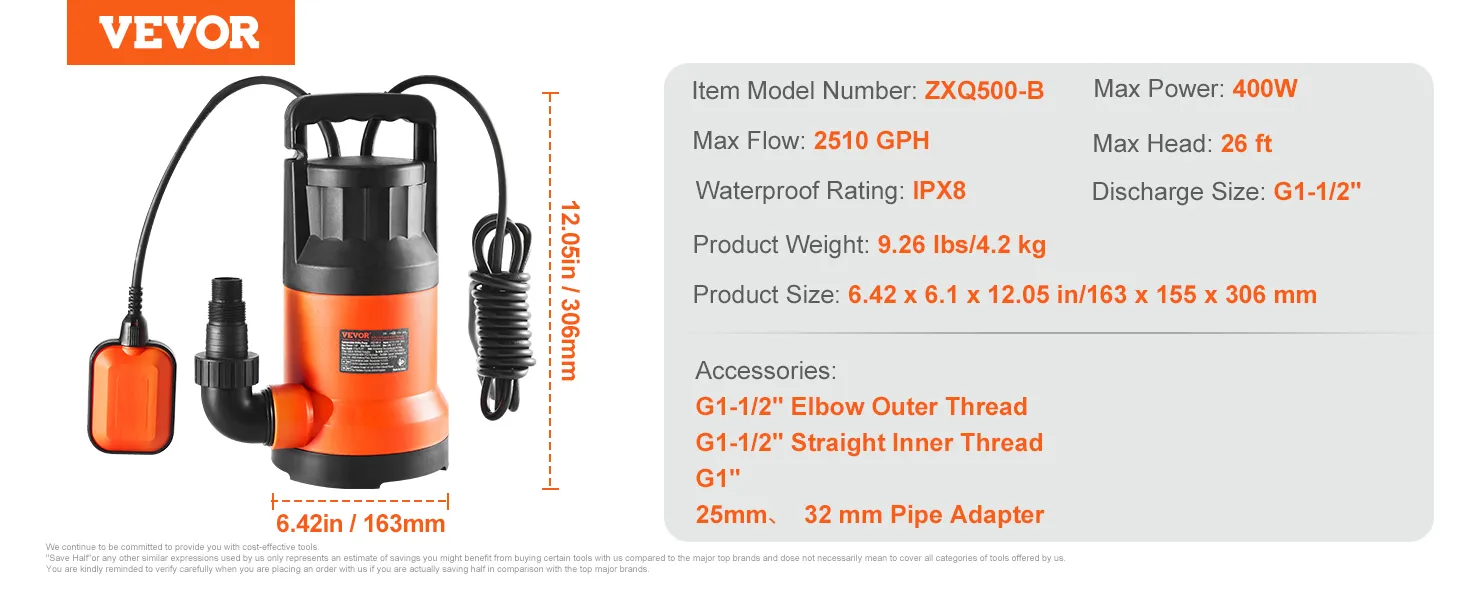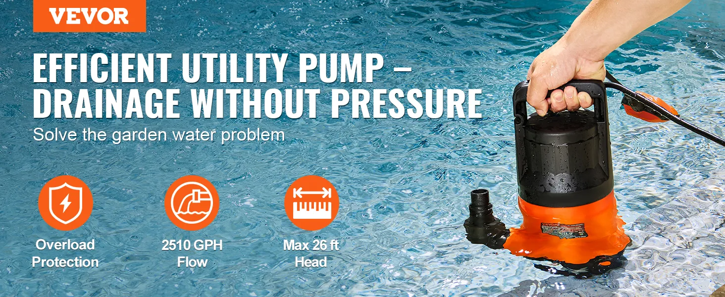 VEVOR Submersible Utility Pump – Keep Your Yard Dry