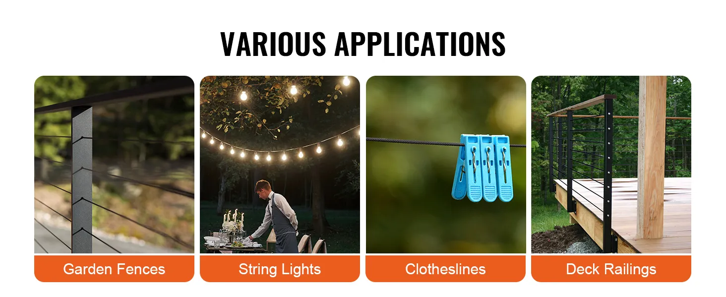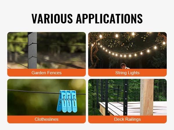 Whether it's for garden fencing, clotheslines, deck railings, or string lights, our steel wire cable is your go-to solution for all tasks.