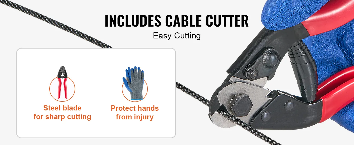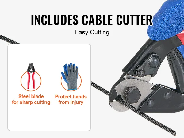 • Easy to Cut and Use: VEVOR aircraft cable comes with a sharp steel blade cable cutter, slicing through with ease and leaving no burrs. And don't forget the gloves – keep your hands safe while you get creative!