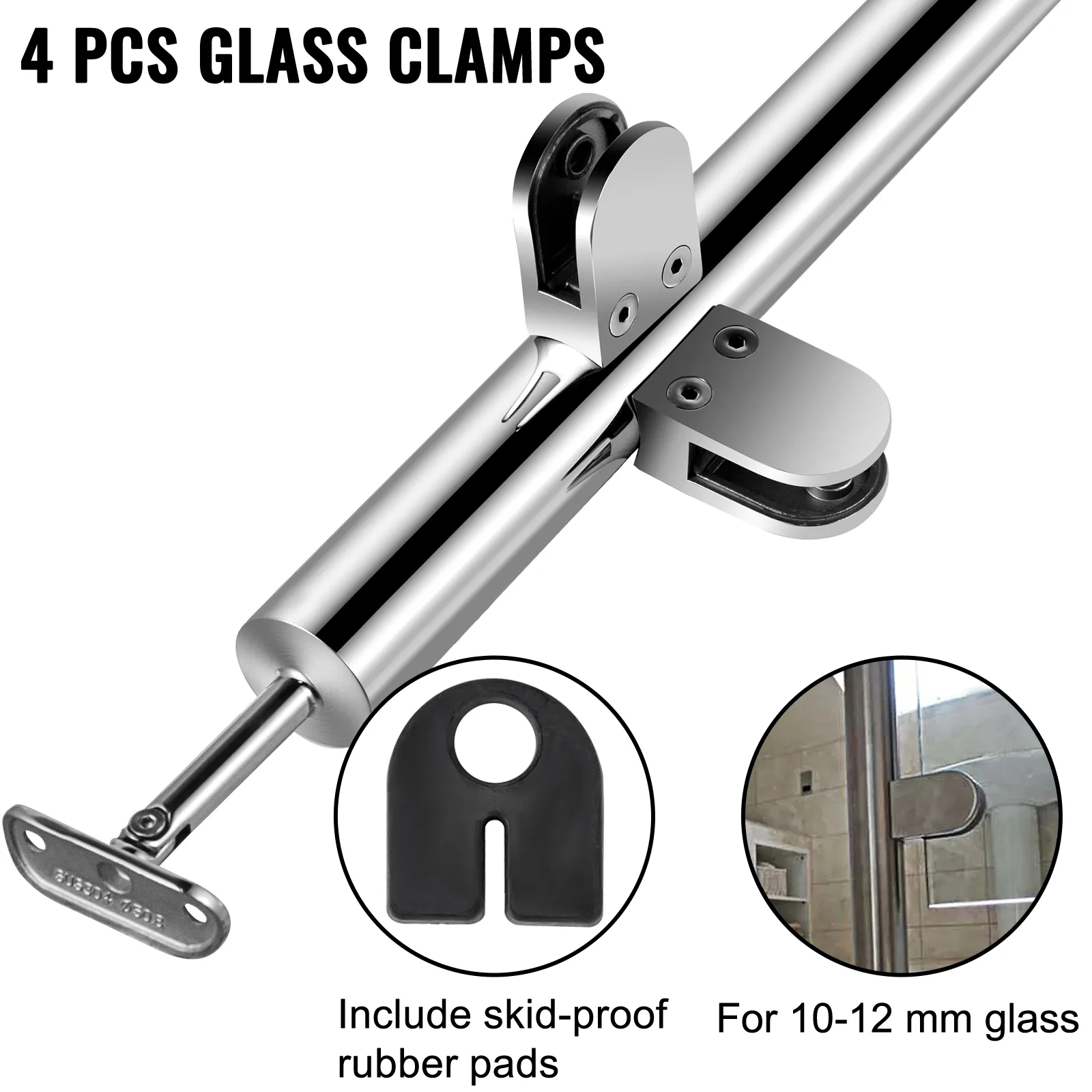 We leveren 4 stuks glazen balustrade klemmen die geschikt zijn voor glasdikte 0,39" (10 mm) tot 0,47" (12 mm). Voor glaspanelen zijn geen gaten nodig.