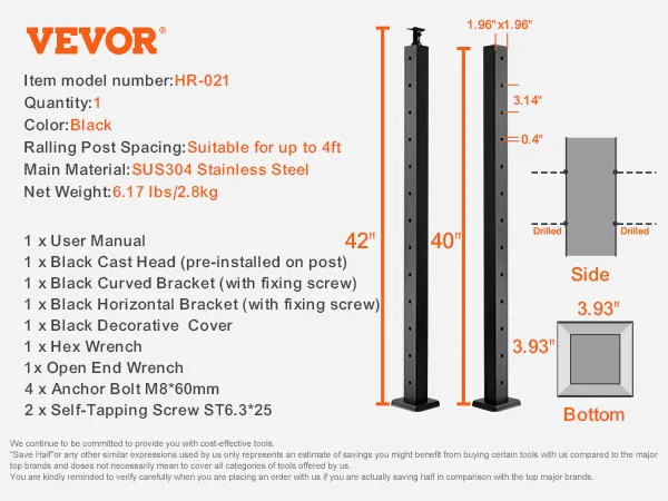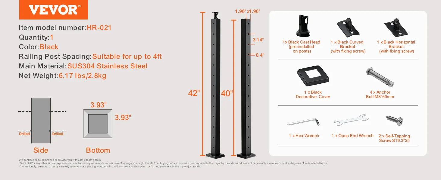 Our deck railing post comes with pre-drilled holes, eliminating the need for additional drilling during installation. You can easily adjust the angle and position during setup, aided by the included accessories, making the process labor-saving.