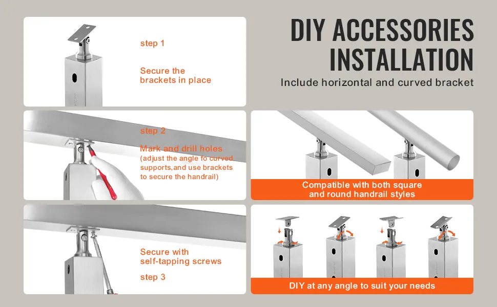 De roestvrijstalen trapleuningen van VEVOR bieden veelzijdige montagemogelijkheden. U kunt ze op houten of betonnen oppervlakken installeren. Hun flexibiliteit maakt ze geschikt voor verschillende toepassingen. Het maakt niet uit of u leuningen nodig hebt voor een terras, trap of balkon, deze passen perfect. De meegeleverde bevestigingsmaterialen vereenvoudigen het installatieproces. U kunt de leuningen stevig vastzetten, wat stabiliteit garandeert. Deze veelzijdigheid stelt u in staat ze in meerdere omgevingen te gebruiken. Ze zijn een praktische keuze voor het verbeteren van de veiligheid en esthetiek in elke omgeving.