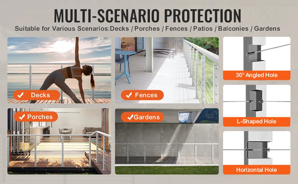 Dit is een praktische en aantrekkelijke oplossing voor elk project voor een terrasleuning. Met deze palen kunt u een strakke look creëren die past bij elke buitenruimte. De roestvrijstalen constructie zorgt voor duurzaamheid en langdurig gebruik. Ze zijn ideaal voor zowel residentiële als commerciële toepassingen. Wat betreft projecten voor woningverbetering, bieden deze palen in alle opzichten een veilige en stijlvolle oplossing voor leuningen! Deze palen zijn ontworpen om kabels stevig vast te houden. Dit systeem biedt veilige leuningen zonder de schoonheid van uw terras te belemmeren. Het biedt een helder zicht zonder het uiterlijk te blokkeren.