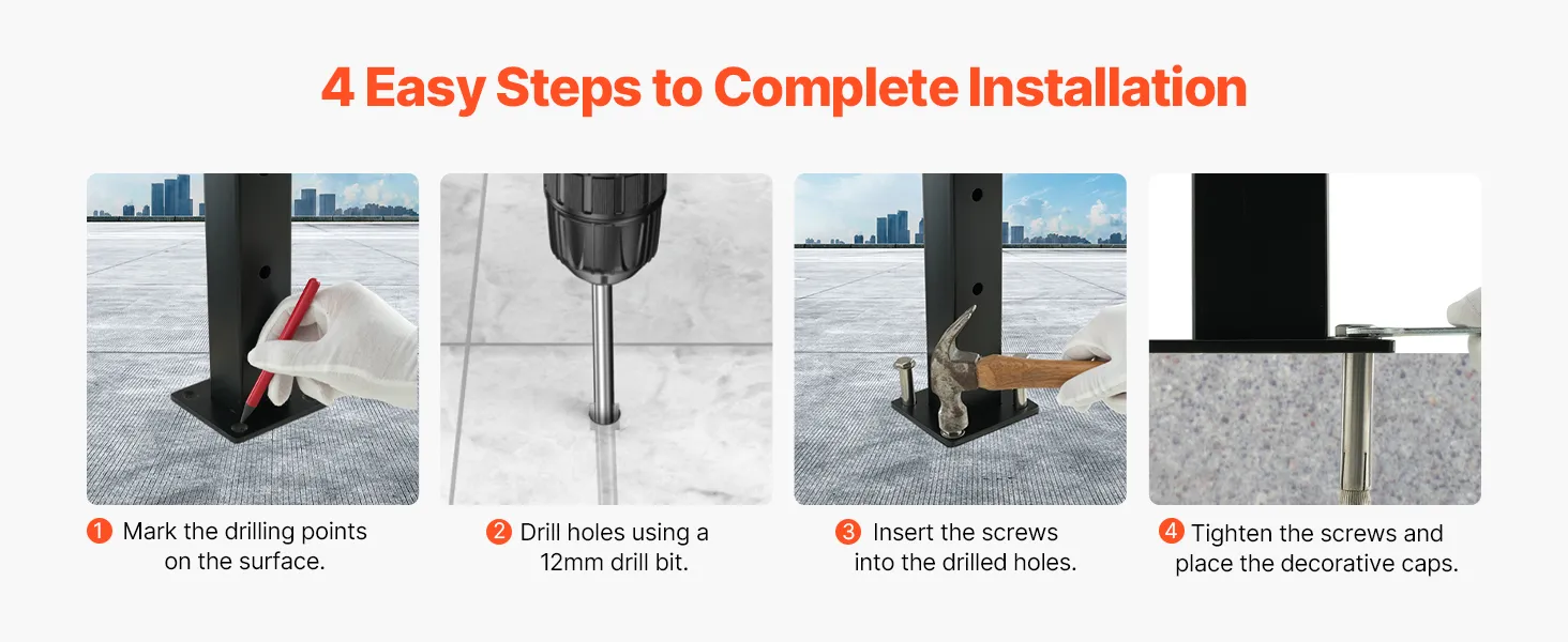 This stair railing comes with pre-drilled holes, avoiding the need for additional drilling. It allows for easy angle and position adjustments during installation and includes all the necessary accessories, saving labor.