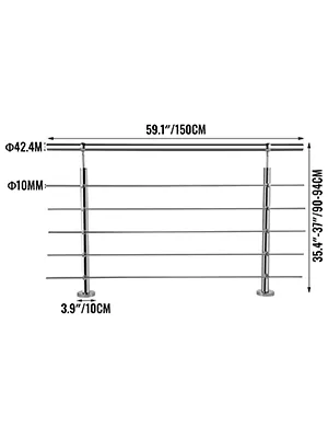 Het installeren van deze veiligheidsrails voor buitentrappen is eenvoudig en flexibel. Het kan horizontaal of op een helling worden geïnstalleerd. Kies uw gewenste methode. Voetdiameter: 10 cm, installatiegaten diameter: 11 mm.