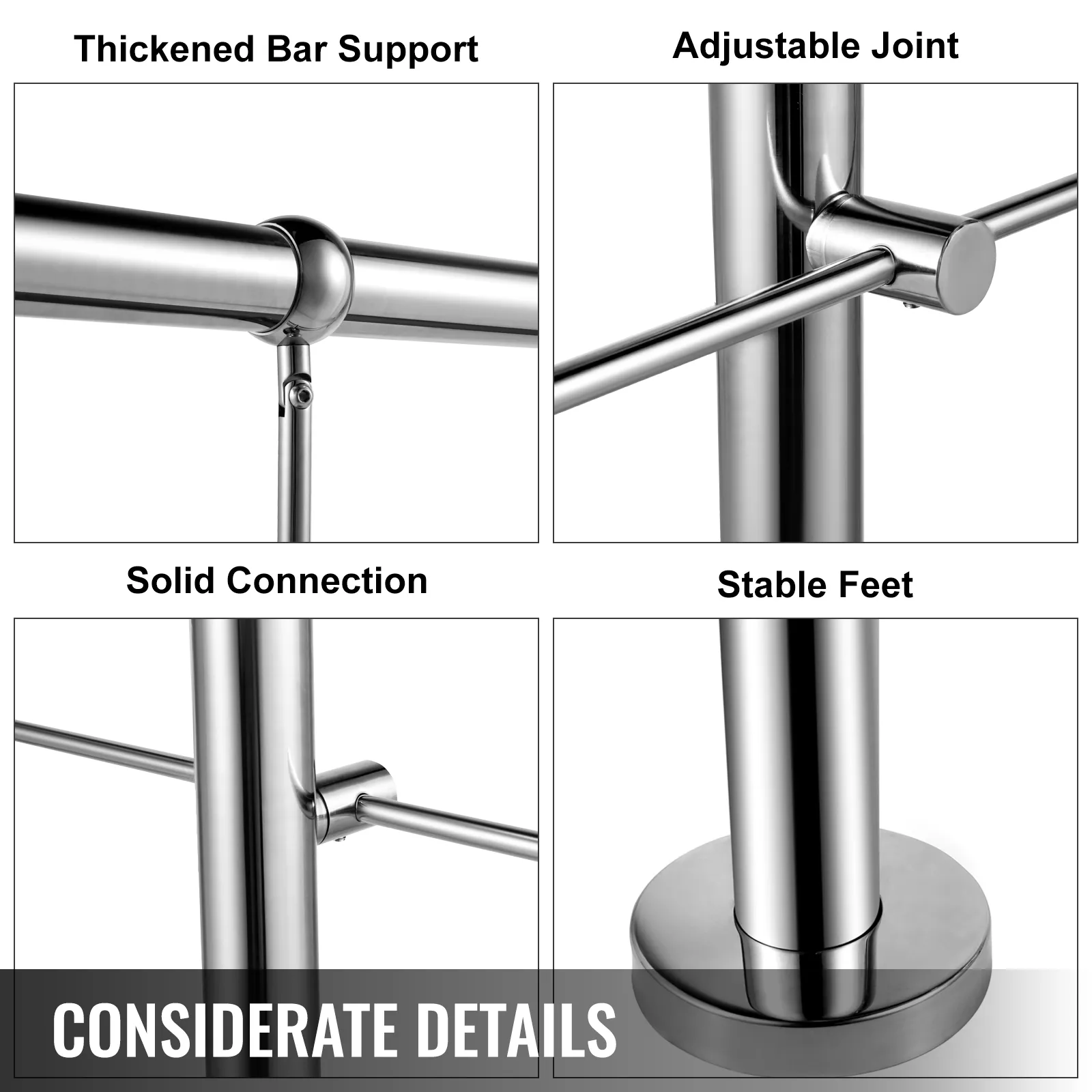 Dankzij de verdikte stangsteunen, verstelbare scharnieren, solide verbinding en stabiele voeten zijn onze leuningen voor buitentrappen en binnentreden duurzaam en comfortabel.