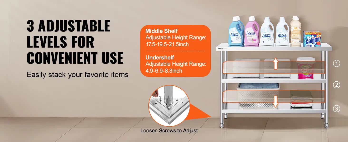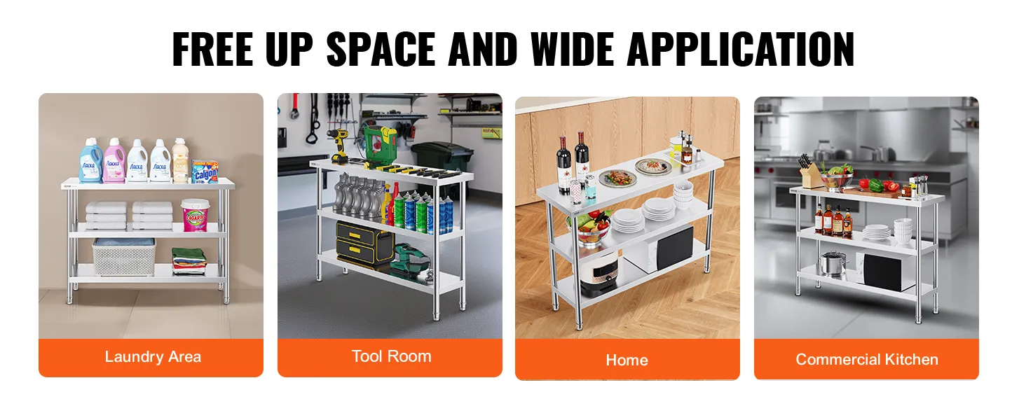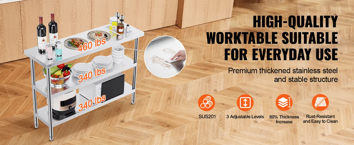 VEVOR Stainless Steel Work Tables with Stylish Design