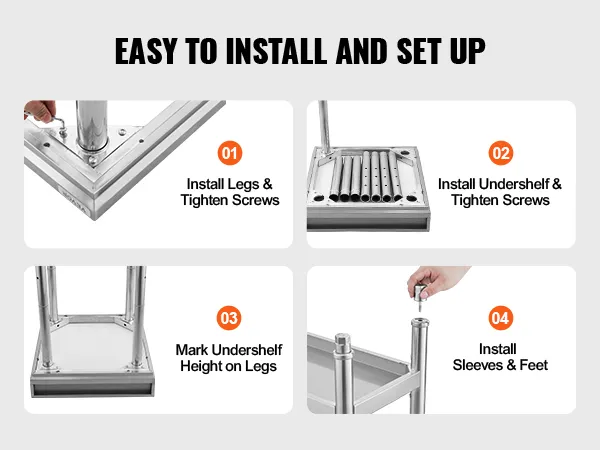 Made from SUS201 stainless steel for the tabletop, shelves, and legs, our work table boasts superior rust resistance and a more appealing finish compared to competitors using 430 stainless steel or galvanized materials. These tables meet strict public health protection standards.