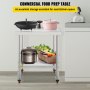 VEVOR roestvrijstalen voorbereidingstafel met onderblad en wielen voor gebruik in de keuken.
