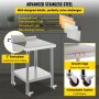 VEVOR roestvrijstalen voorbereidingstafel met zwenkwielen en tweelaags ontwerp, afmeting 24x24 inch.
